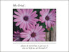 “My Grief… please do not tell me to get over it, why not help me get through it?” This beautiful 24×18 floral features pink daisies and is the perfect complement to the other floral posters shown. -